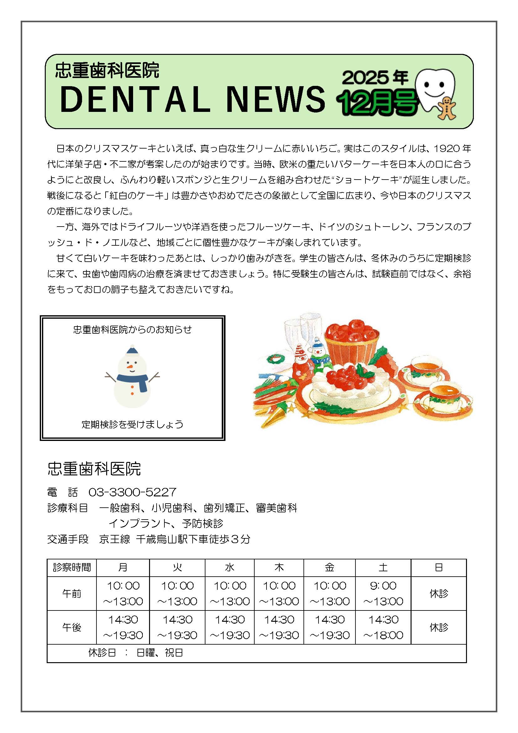 千歳烏山の歯医者、忠重歯科医院のデンタルニュースのページ